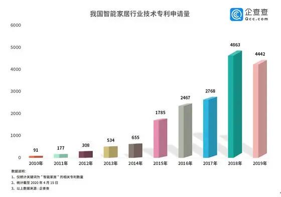 潛力巨大的“藍(lán)海”市場(chǎng)早已廠(chǎng)商云集,智能家居行業(yè)技術(shù)專(zhuān)利申請(qǐng)量迅速攀升。企查查數(shù)據(jù)顯示,我國(guó)智能家居相關(guān)專(zhuān)利申請(qǐng)總量早已破萬(wàn),2015年開(kāi)始我國(guó)智能家居行業(yè)技術(shù)邁入快速發(fā)展期,2018年達(dá)到巔峰,數(shù)量達(dá)4863件,較2017年同比增長(zhǎng)了76%,2019年專(zhuān)利申請(qǐng)數(shù)稍減。由此可見(jiàn),智能家居市場(chǎng)競(jìng)爭(zhēng)較為激烈,各路玩家步伐急促。