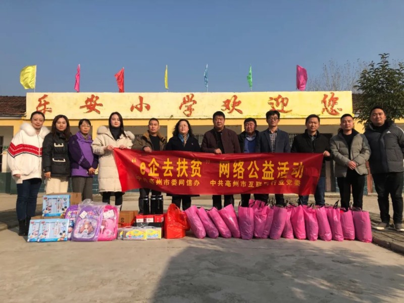 12月4日,由亳州市委網(wǎng)信辦、亳州市互聯(lián)網(wǎng)行業(yè)黨委組織開展的“e企去扶貧”網(wǎng)絡(luò)公益活動,走進(jìn)利辛縣鞏店鎮(zhèn)樂安小學(xué)。