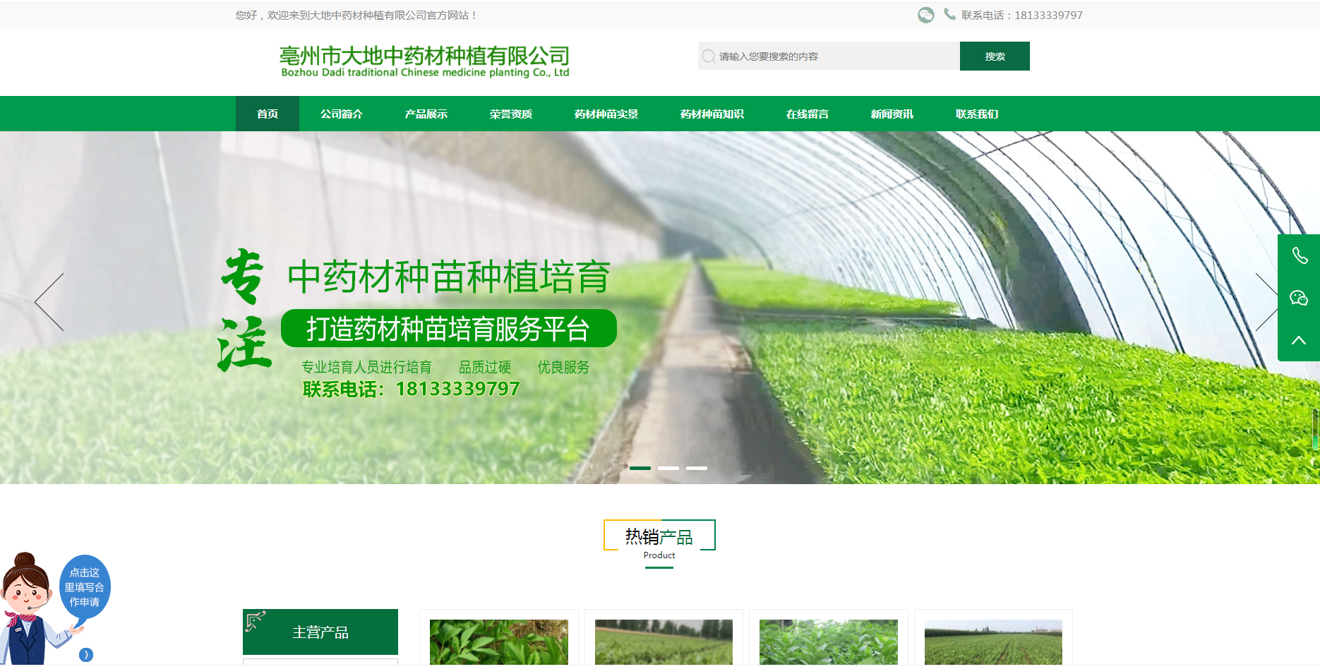 http://www.ddzyc365.com/亳州市大地中藥材種植有限公司,在中藥材種植技術方面積累了豐富經驗?,F(xiàn)已發(fā)展為一個技術力量雄厚的單位,現(xiàn)有員工56余人,現(xiàn)有種植基地一萬五千畝。公司的經營宗旨就是&ldquo誠信合作,共...